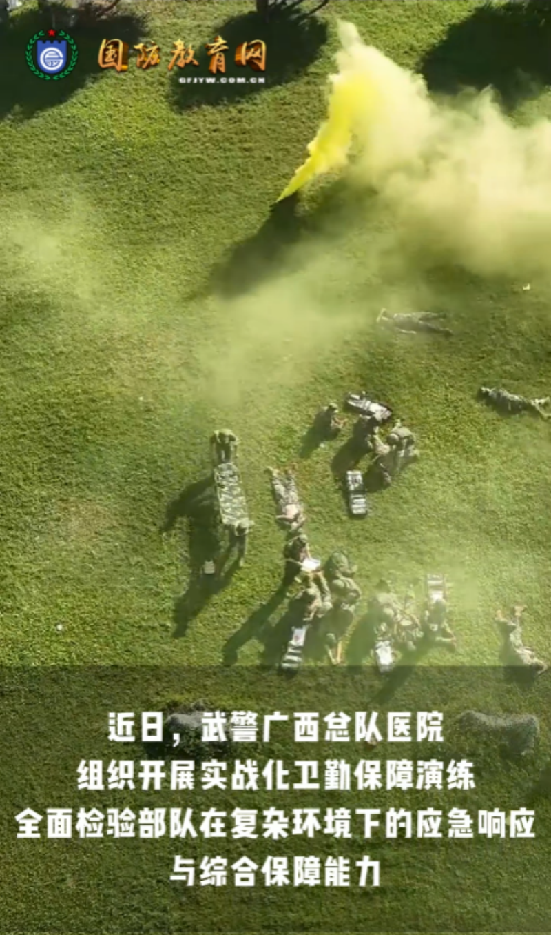 视频信息近日,武警广西总队医院组织开展实战化卫勤保障演练,全面检验部队在复杂环境下的应急响应与综合保障能力。(谢有朋、杨宝律、董亚涛、刘坚)