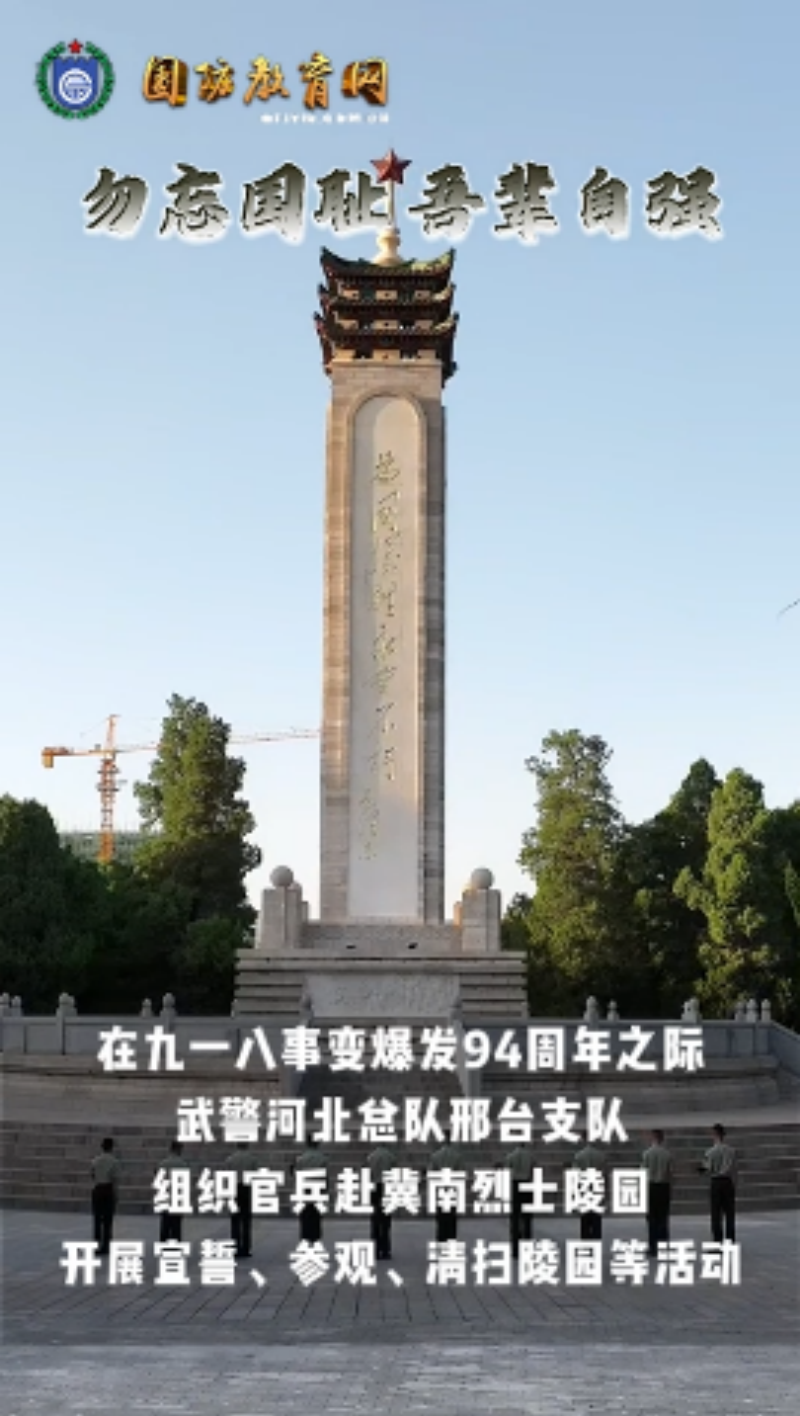 视频信息在“九一八”事变爆发94周年之际,武警河北总队邢台支队组织官兵赴冀南烈士陵园,开展宣誓、参观、清扫陵园等活动。(作者:董哲霖 魏源)