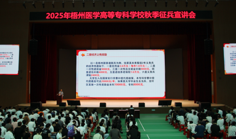 携笔从戎铸军魂 热血青春报家国广西梧州市龙圩区人武部深入高校开展征兵宣传■麦迪雅为进一步激发青年学子参军报国的热情,扎实做好2025年秋季征兵工作,近日,广西梧州市龙圩区人武部政委黄德金率队走进梧州医学高等专科学校,为怀揣军旅梦想的莘莘学子带...