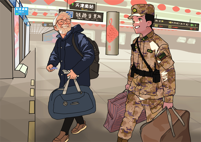 春节是万家灯火团圆夜,是一家人其乐融融围坐在一起的年夜饭,是大红的灯笼,是喜庆的春联,对军人来说,也是火热的战备和寒风中默默的坚守……下面让我们通过一组漫画来看看武警天津总队执勤一支队某中队的官兵是怎样度过这个春节的。