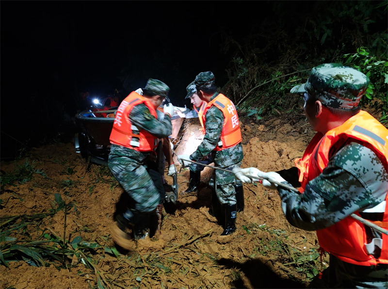 “我们是民兵应急分队,大娘不要害怕,坐好了,我们把你转移到安全点。”民兵应急分队人员采取背、抱的方式转移,将受灾群众转移到救生艇,疏散至安全区域。随后民兵应急分队一户一户搜寻,将被困家中的群众,转移至安全地带。在长达12个多小时的艰辛救援,截至4月22日凌晨4时,共及时转移被困群众12人,排查房屋30余栋,有效保卫人民群众生命财产安全,筑起了一道钢铁长城。