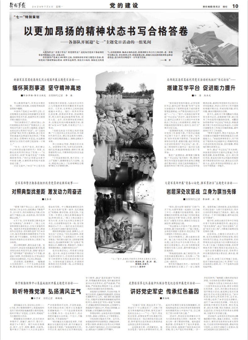“七一”前夕,各部队开展形式多样的主题党日活动。(图片提供:杨洁林、薛 泉、时 超、黄海粮、毕燕飞,美术设计:黄诗宇)
