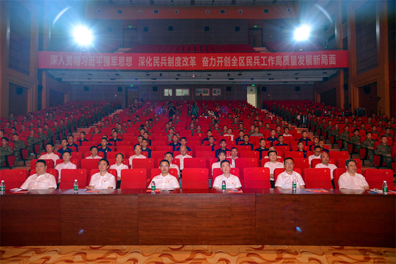 “召之即来、来之能战、战之必胜”,伴随铿锵嘹亮的口号声,《星火相传·征途如虹》合川区民兵建设宣传片拉开活动序幕。片中讲述了合川民兵牢记领袖殷殷嘱托,赓续传承民兵工作的优良传统,在练兵战备、抢险救灾、疫情防控、参建参治等重大任务中,向党和人民交出的合格答卷。现场一片静谧,在场所有人的思绪都被带进历年来民兵奋斗的光辉历程,深受触动、备受鼓舞。