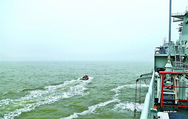 “人员落水,立即前出救援!”航行途中,“特情”突至。编队迅速开展救生部署,救援小艇紧急前出,舰载直升机临空搜索,随舰医疗队快速备便担架、保温毯、除颤仪等救援设备。很快,“落水人员”被成功救起,并通过舰载直升机转送后方医院。