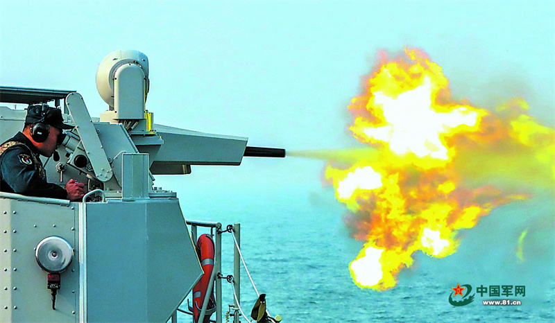 “发现‘敌’武装侦察船!”进入训练海区不久,官兵接到“敌情”通报。编队指挥员迅速判明情况,命令各舰占领攻击阵位,进入战斗状态。舰艇各战位密切配合,舰炮武器系统稳定跟踪“敌”目标。“开火!”随着指挥员一声令下,舰炮喷吐火舌,成功命中目标……