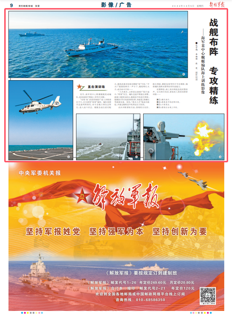 初冬,海军某中心数艘舰艇组成编队,赴某海域开展海上多科目训练。