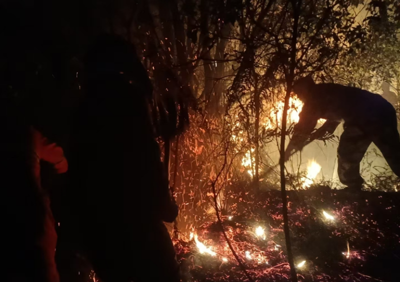 火情紧急,刻不容缓。云落镇应急民兵闻令而动,迅速集结前往山火地点。现场浓烟滚滚,火光冲天,高温热浪扑面而来。面对恶劣环境,民兵队员与消防员紧密配合,及时疏散周围群众,开辟隔离带阻断火势扩散,有效展开扑救。